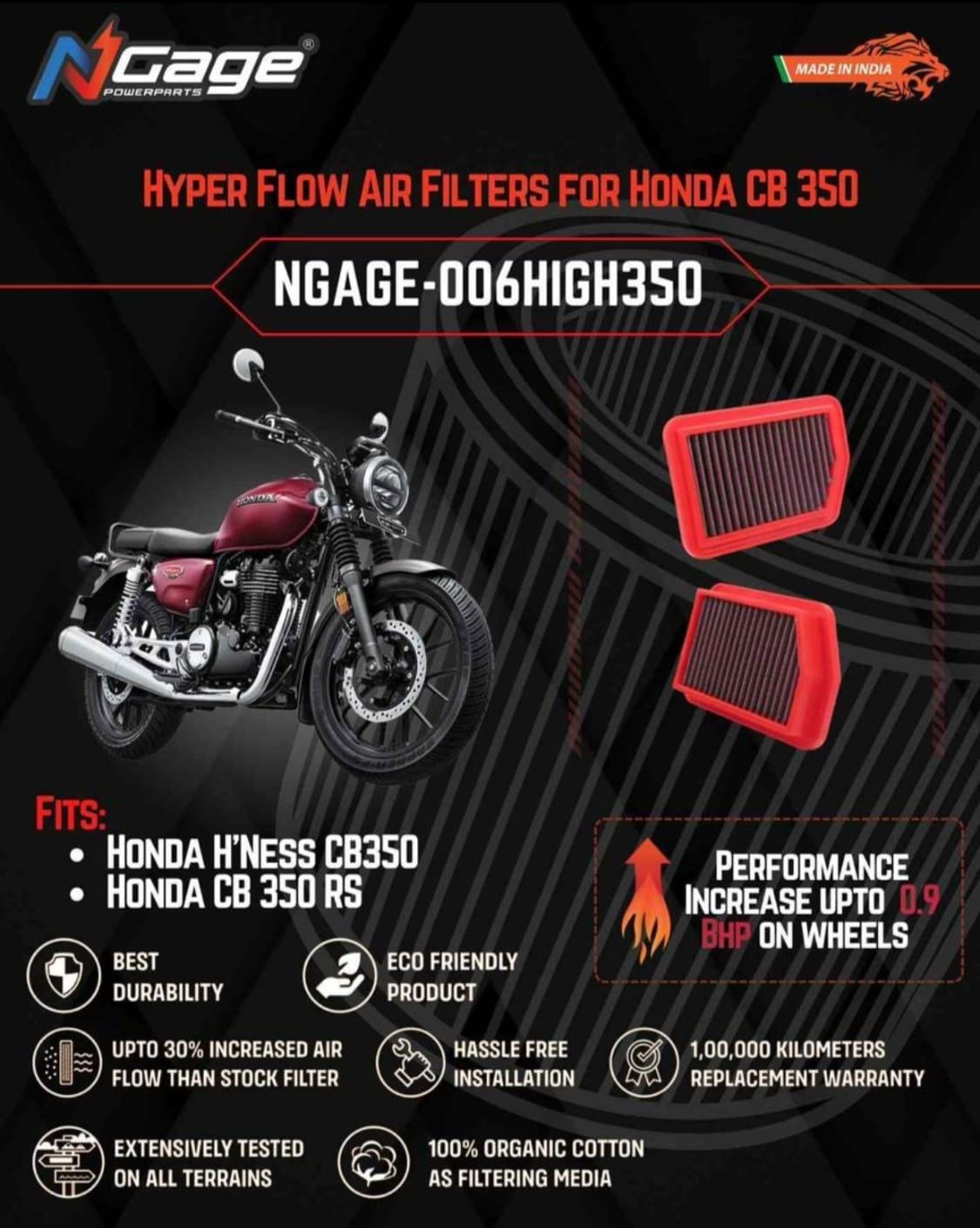 Hyper Flow Air Filter For Honda CB350RS / H’ness / CB350 – Ngage