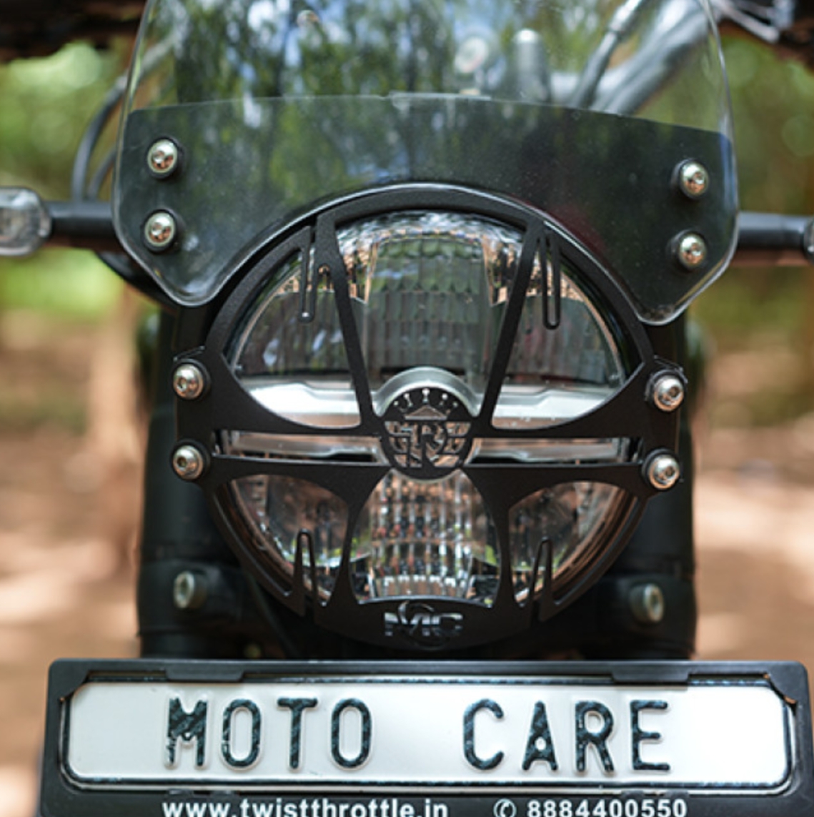 Protect your Royal Enfield Guerrilla 450’s headlamp with the Motocare Headlight Grill. Built from durable materials, it shields against stones, debris, and impacts without affecting light output. This essential accessory prevents costly damage, enhances durability, and adds a rugged aesthetic, ensuring safer rides in all terrains and conditions.