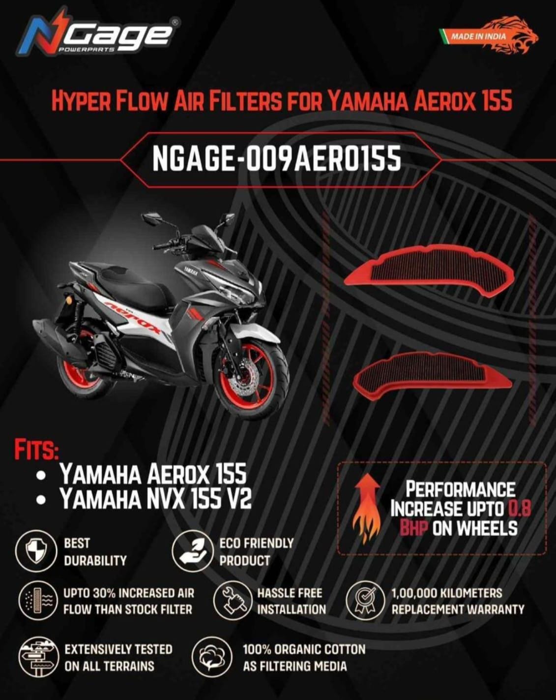 Hyper Flow Air Filter For Yamaha Aerox 155 / NVX 155 V2 – Ngage