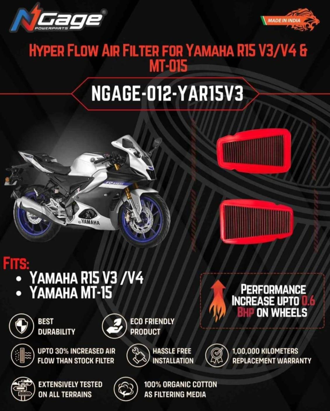 Hyper Flow Air Filter For yamaha R15 V3 / R15 V4 / MT 15 – Ngage
