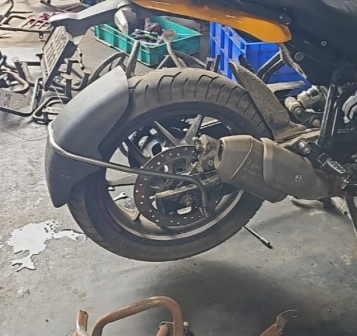 MOTOCARE TYPE 2 – TYRE HUGGER FOR GUERRILLA 450 is a practical and essential accessory designed to fit all types of motorcycles. It significantly reduces water and mud spray, keeping the rider, pillion, and bike cleaner—especially during monsoon rides. Moreover, it prevents excess water, dirt, and debris from reaching critical components such as the chain, suspension, and engine, thereby reducing wear and tear. This makes the tyre hugger particularly valuable during rainy conditions, ensuring both enhanced safety and improved maintenance of your bike.