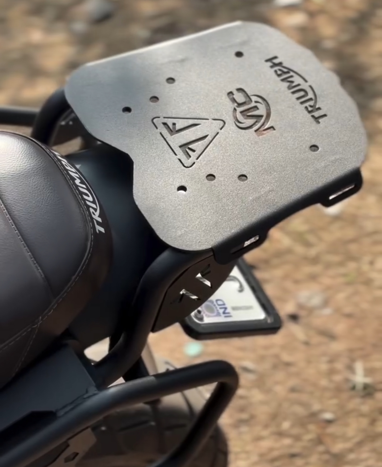 Upgrade your Triumph Scrambler 400 with the Motocare Pipe Plate Carrier, precision-machined for strength and durability. It provides a secure mounting base for luggage or accessories while maintaining a clean design. This essential accessory enhances load stability, convenience, and overall practicality, making long rides and daily use more efficient and reliable.