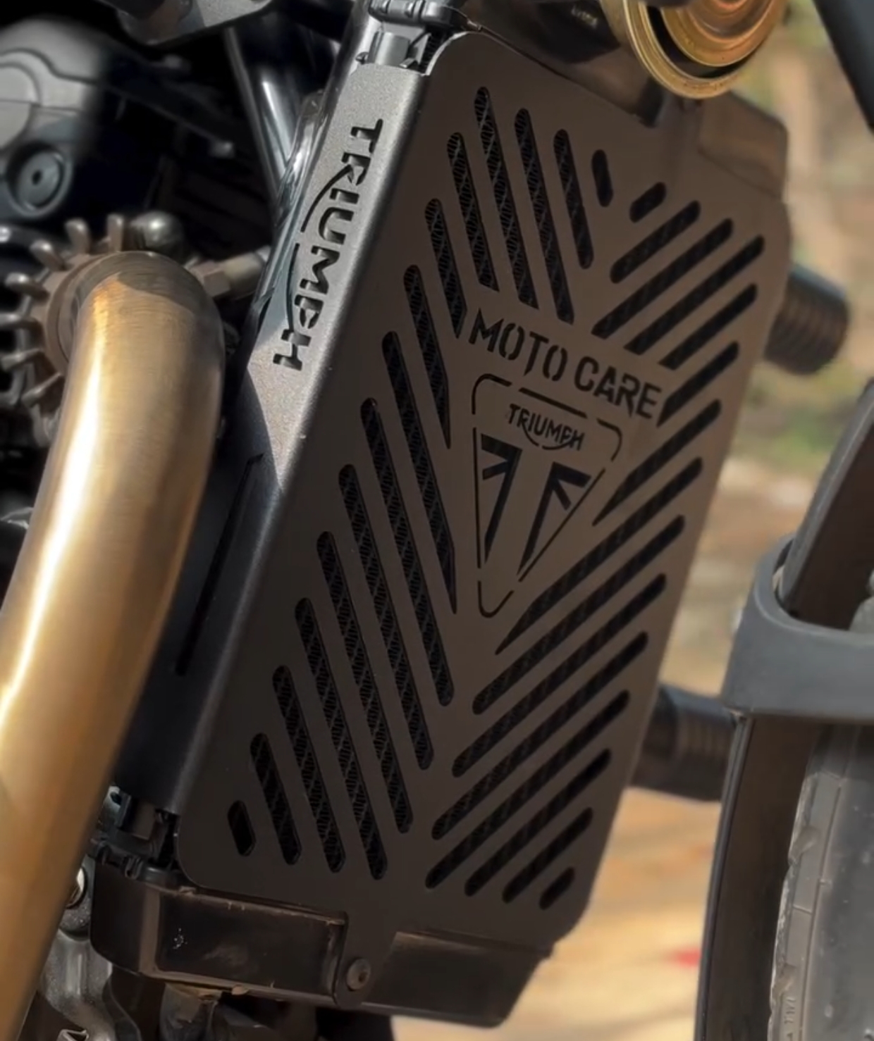 Protect your Triumph scrambler 400 with the Motocare Radiator Guard, designed to shield the radiator from stones, debris, and road hazards. Built for durability without restricting airflow, it ensures efficient cooling. This essential accessory prevents costly damage, enhances engine performance, and ensures reliable riding in all road and weather conditions.