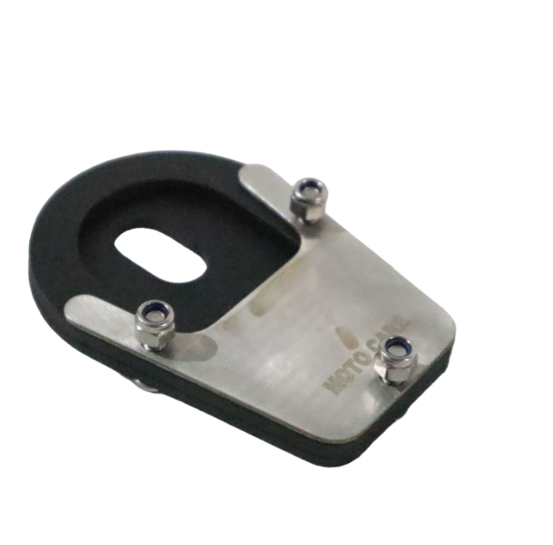 Improve stability on your Triumph Scrambler 400 with the Motocare Stand Extender, precision-machined for strength and durability. It increases the surface area of the side stand, preventing sinking on soft ground. This essential accessory ensures safer parking, better balance, and added confidence when stopping on uneven or loose surfaces.