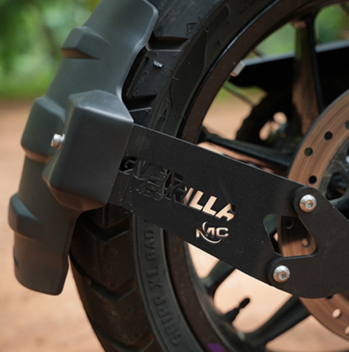 Protect your Royal Enfield Guerrilla 450 with the Motocare Tyre Hugger, designed to reduce mud, water, and debris spray from the rear wheel. It keeps the bike cleaner and safeguards vital components. This essential accessory enhances durability, improves riding comfort, and maintains a neat, well-protected rear section.
