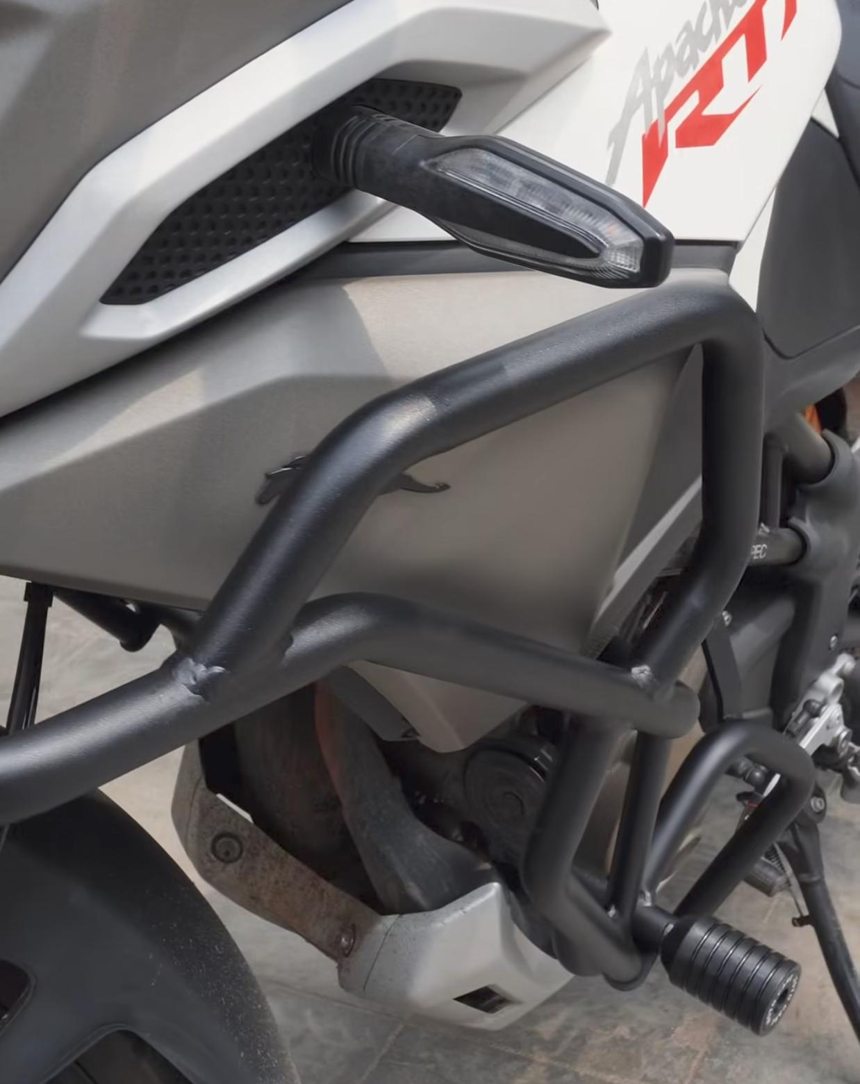 Protect your TVS Apache RTX 300 with the Motocare Crash Guard, designed to absorb impact during falls or collisions. Built from high-strength materials, it safeguards the engine and key components. This essential accessory reduces repair costs, enhances rider safety, and adds a rugged look for confident riding in all conditions.