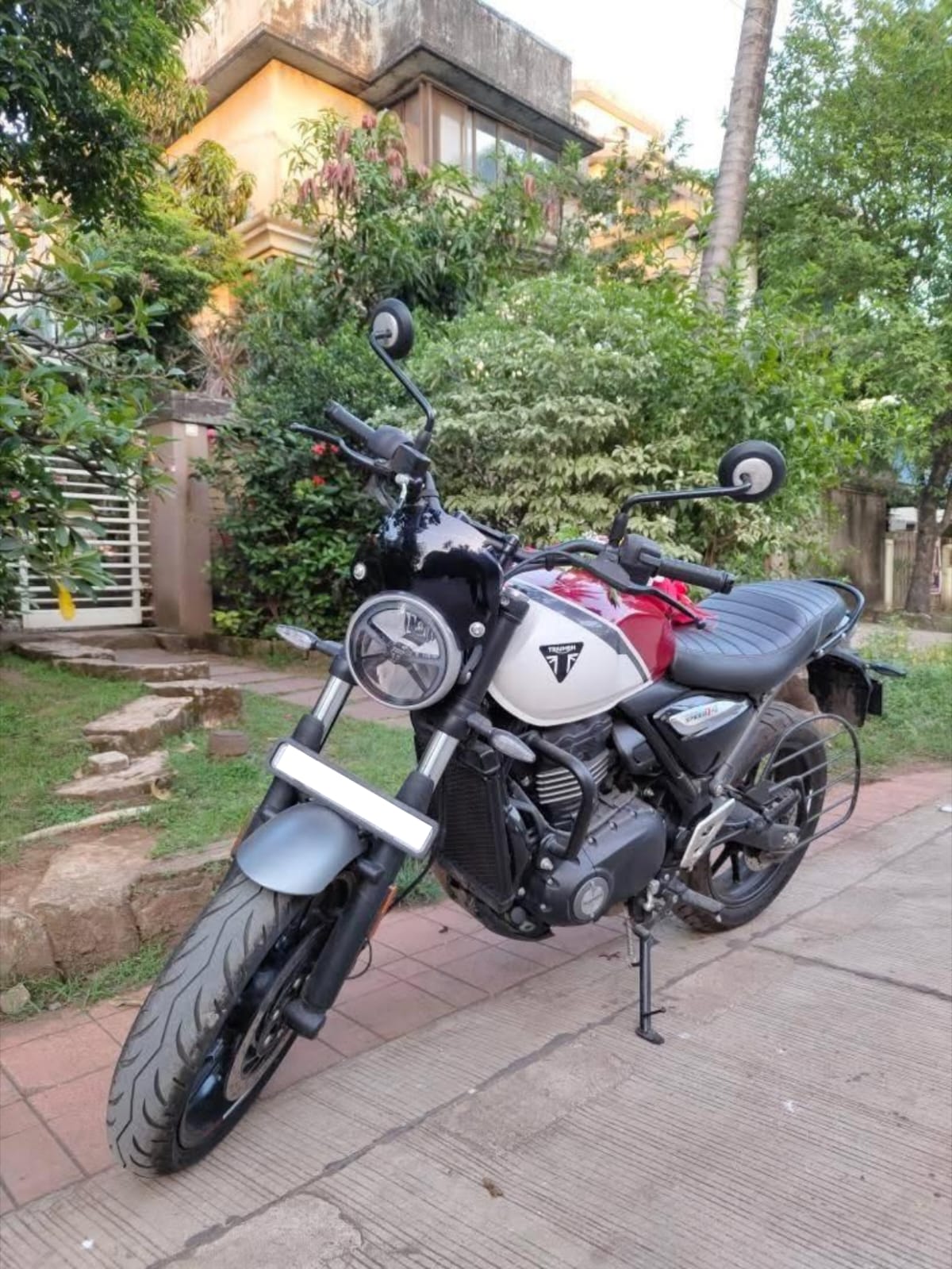 The triumph speed T4 windshield , designed and manufactured by Autopappa Motoclub, is a practical and stylish upgrade that enhances both the aerodynamics and retro appeal of the bike. By efficiently channeling airflow, it reduces turbulence, ensuring a smoother and more comfortable ride, especially on highways. Additionally, it improves stability at higher speeds, making long-distance rides more effortless. Designed to seamlessly blend with the speed T4’s retro-scrambler aesthetics, this windshield enhances the bike’s rugged yet sleek look while providing essential wind protection.